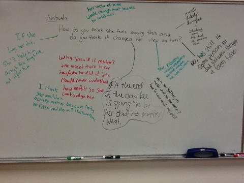 The next presentation, by Adam, addressed the idea of guilt — but after the war. It mentions that fact that O’Brien writes about conversations with his daughter, where he struggles with telling her the “truth” about what he did in the war. Did he kill anyone? He concludes the story with two answers — yes, and no. And that both answers could be honest.